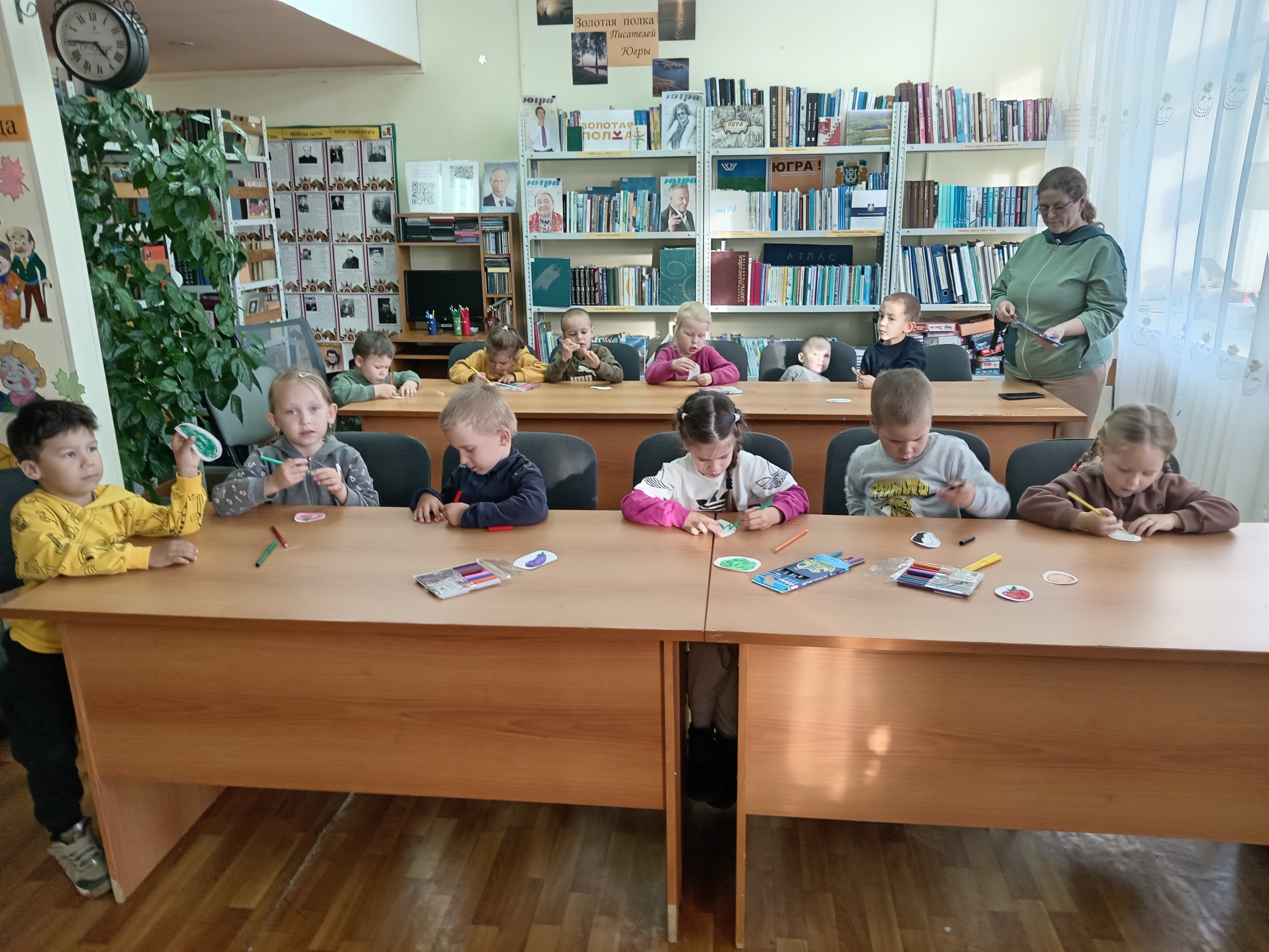 Затем каждому ребенку было предложено раскрасить бумажный овощ, всем вместе «собрать урожай» и уложить свои овощи в корзину. Задание детям понравилось, они с большим удовольствием приняли в нем участие, за что получили поощрения в виде небольших сувениров на память.