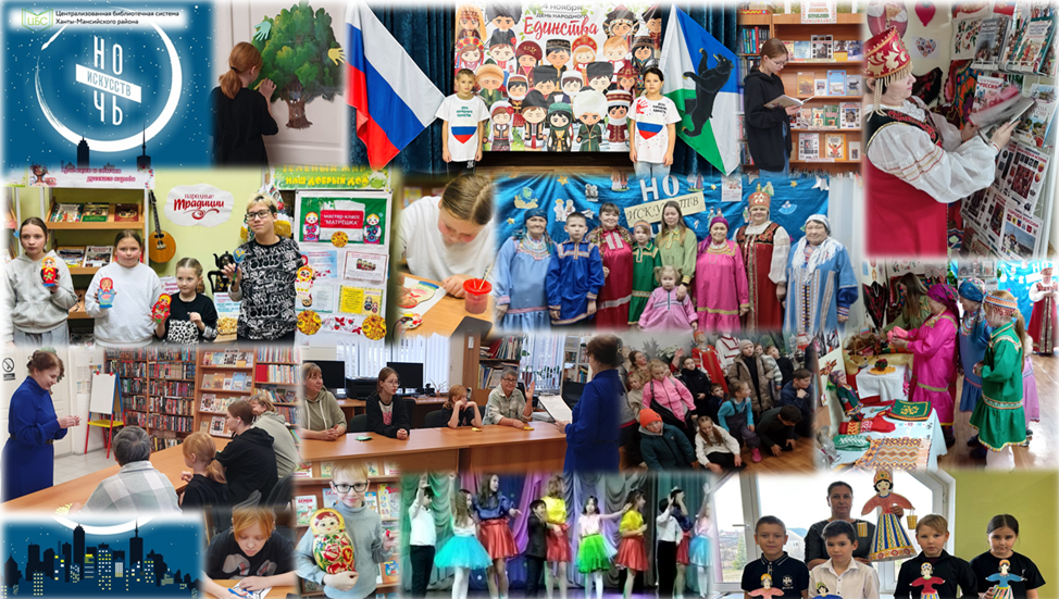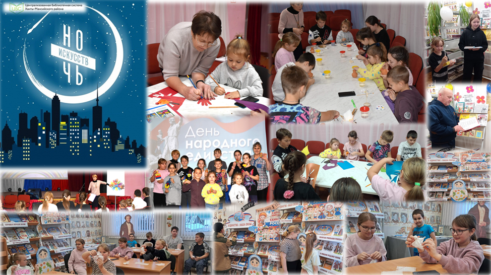 В преддверии Дня народного единства по всей стране прошли мероприятия в рамках всероссийской акции «Ночь искусств». В 2025 году её девизом стали слова: «В единстве культур – сила народа». В отделениях Централизованной библиотечной системы Ханты-Мансийского района работали интеллектуальные и творческие площадки, объединившие жителей разного возраста.